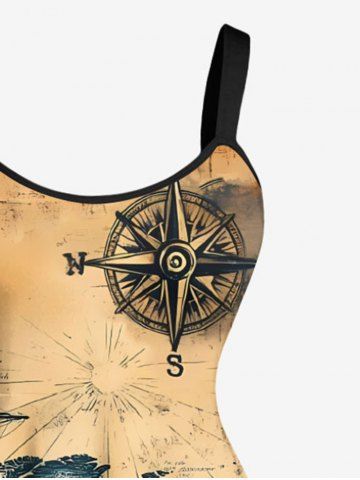 Plus Size Sea Map Ship Rudder Cruise Print Hawaii Tank Dress - Light Coffee - L