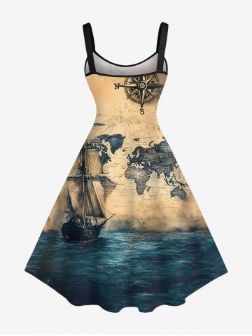 Graphic Dresses > Plus Size Sea Map Ship Rudder Cruise Print Hawaii Tank Dress