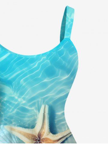 Graphic Dresses > Plus Size Sea Ripples Beach Starfish Print Hawaii Tank Dress