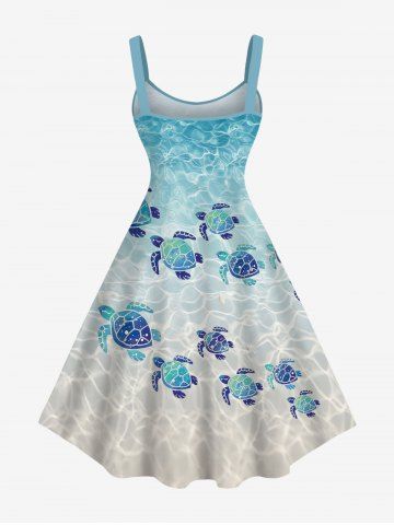 Plus Size Sea Turtle Sea Ripple Print Hawaii Tank Dress - Sky Blue - M