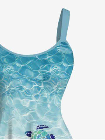 Plus Size Sea Turtle Sea Ripple Print Hawaii Tank Dress - Sky Blue - 6x