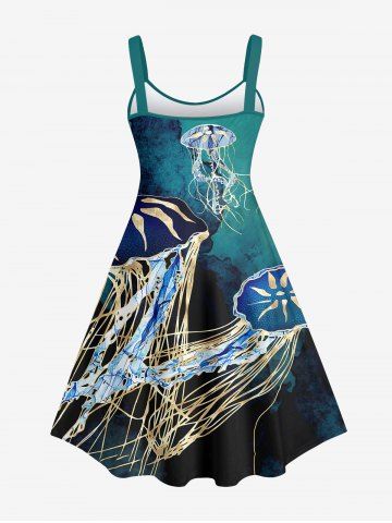 Graphic Dresses > Hawaii Plus Size Sea Creatures Underwater World Jellyfish Print Tank Dress