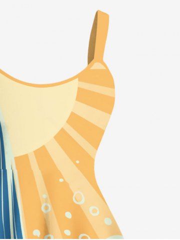 Plus Size Sea Wave Sun Bubble Print Hawaii A Line Tank Dress - Yellow - 1x
