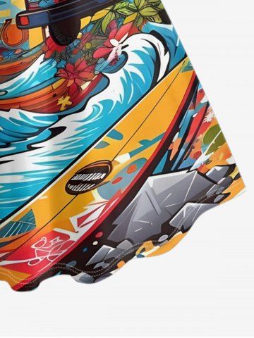 Plus Size Sea Waves Coconut Tree Flower Bus Sun Print Hawaii Tank Dress - Sky Blue - 4x