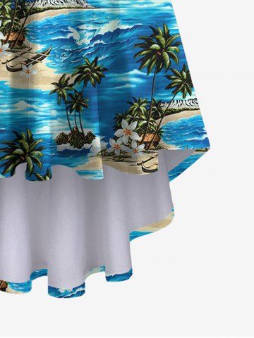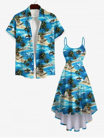t*****k5Sea Waves Flowers Coconut Tree Boat Print Plus Size Matching Hawaii Beach Outfit for CouplesColor: LIGHT BLUEShirt fit husband perfect, I love the dress, the flow of it. Can't wait to take it on winter vacation down south! Worked well when I wore the top over the dress too!