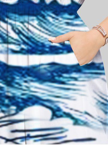 Plus Size Sea Waves Print Hawaii Split Pocket A Line Midi Dress - White - 2x