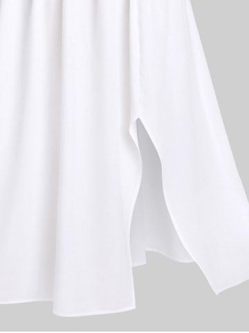 Plus Size Sea Waves Print Hawaii Split Pocket A Line Midi Dress - White - 3x