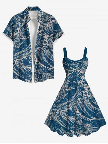Graphic Dresses > Plus Size Sea Waves Retro Pattern Print Hawaii Cruise Tank Dress