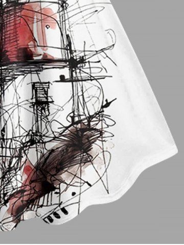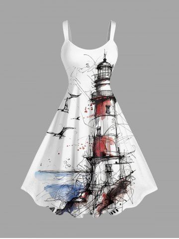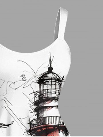 Plus Size Seascape Bird Light House Graffiti Print Hawaii Tank Dress - White - 2x