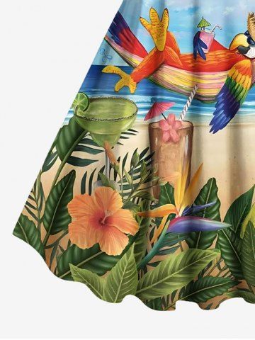 Graphic Dresses > Plus Size Seascape Hibiscus Flower Leaf Juice Parrot Hammock Print Hawaii Tank Dress
