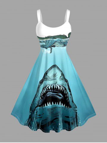 Graphic Dresses > Plus Size Shark Dinosaur Sea Print Hawaii A Line Dress