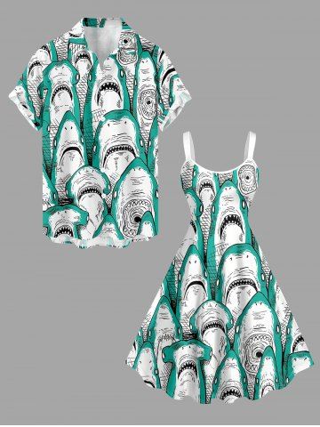 Plus Size Shark Print Hawaii A Line Dress - Emerald - 6x