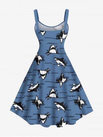Plus Size Shark Sea Waves Print Hawaii A Line Tank Dress - Blue - 6x