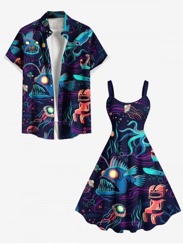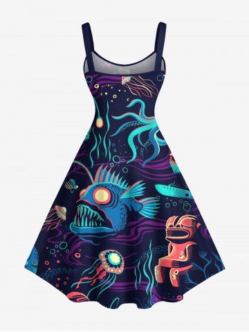 Graphic Dresses > Plus Size Shark Squid Jellyfish Print Hawaii Sea Creatures A Line Tank Dress