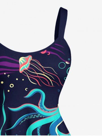 Plus Size Shark Squid Jellyfish Print Hawaii Sea Creatures A Line Tank Dress - Black - 1x