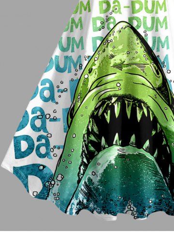 Plus Size Shark Swimmer Letters Print Hawaii Tank Dress - Green - Xs