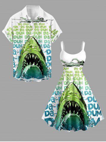 Plus Size Shark Swimmer Letters Print Hawaii Tank Dress - Green - M