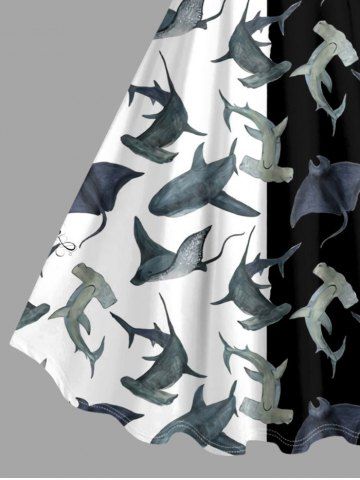 Plus Size Sharks Colorblock Print Hawaii Tank Dress - Black - Xxs