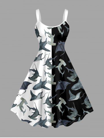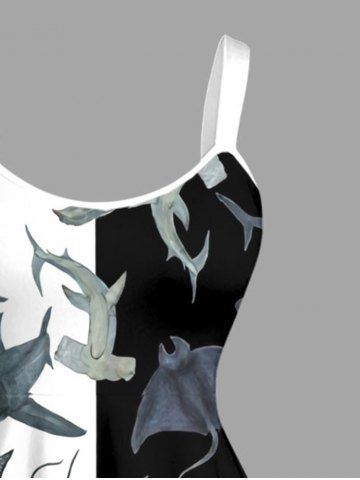 Plus Size Sharks Colorblock Print Hawaii Tank Dress - Black - 4x