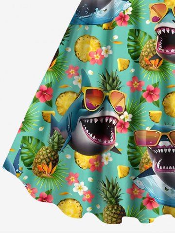 Plus Size Sharks Pineapple Tropical Leaf Flowers Print Hawaii Tank Dress - Green - S