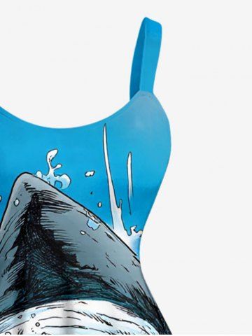 Plus Size Sharks Sea Waves Print Hawaii Tank Dress - Light Blue - Xxs