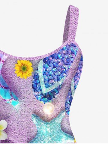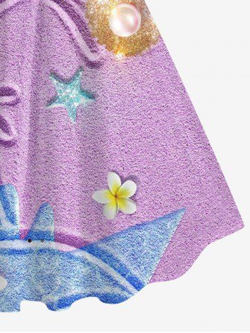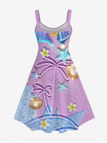 Plus Size Shell Floral Coconut Tree Sea Sequins Stars Beach Print Hawaii Backless A Line Tank Dress - Light Purple - 4x