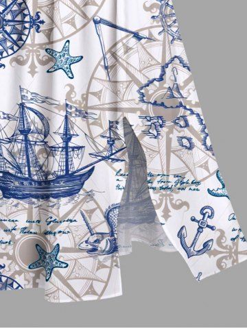 Plus Size Ship Anchor Steering Wheel Print Hawaii Split Pocket A Line Midi Dress - Blue - Xs