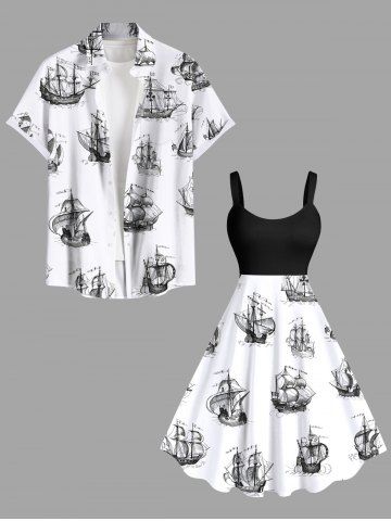 Plus Size Ship Sea Waves Cruise Print Hawaii Tank Dress - White - Xxs