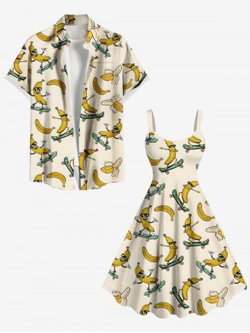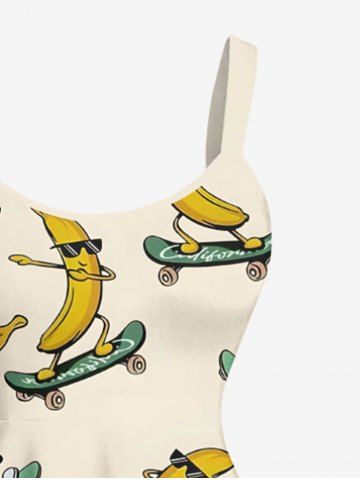 Plus Size Skateboard Rock Banana Print Hawaii Tank Dress - Beige - S