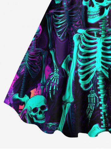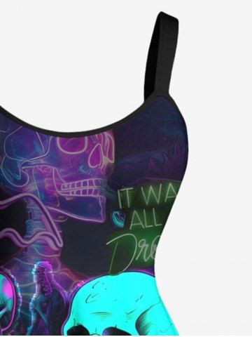 Plus Size Skeleton Heart Letters Print Halloween A Line Tank Dress - Black - L