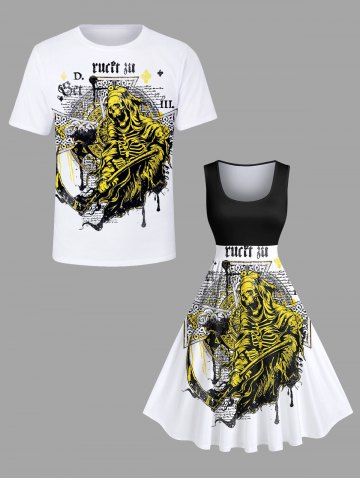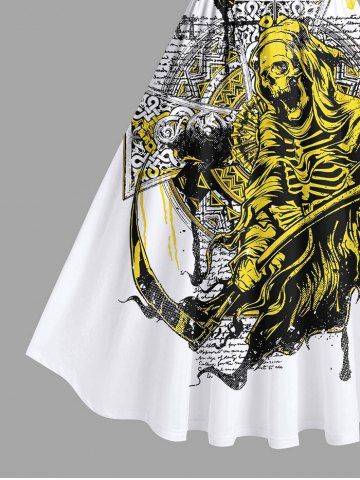 Graphic Dresses > Plus Size Skeleton Wizard Sickle Cross Letters Print Vintage Swing A Line Dress