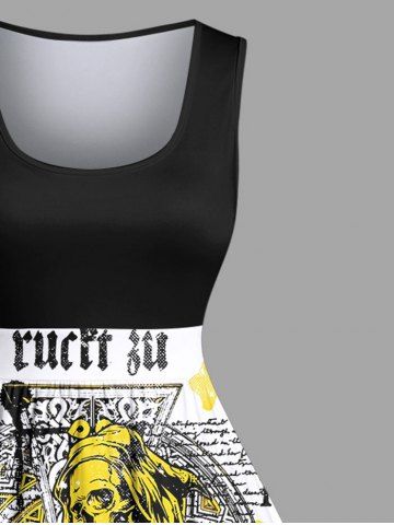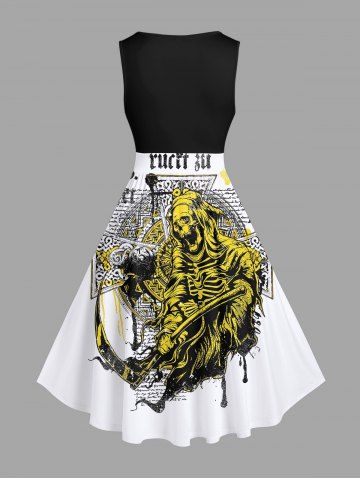Plus Size Skeleton Wizard Sickle Cross Letters Print Vintage Swing A Line Dress - Black - S