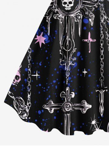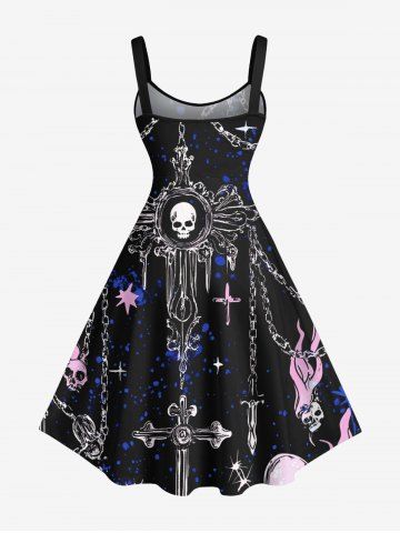 Plus Size Skull Chain Cross Fire Flame Print Hawaii A Line Tank Dress - Black - Xs