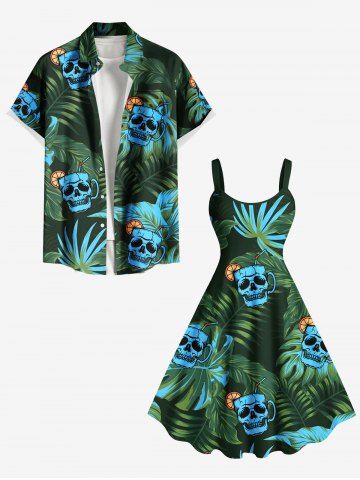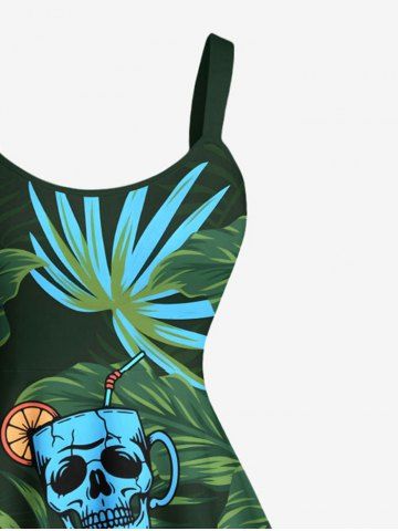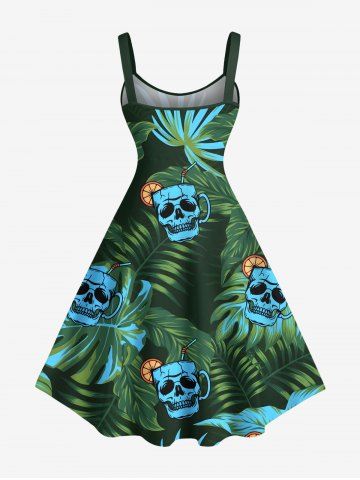 Plus Size Skull Cup Orange Leaf Tropical Print Hawaii Tank Dress - Light Green - 6x