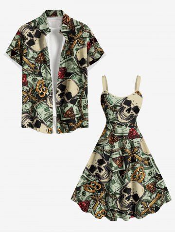 Plus Size Skull Dollar Diamond Print Tank Dress - Black - 4x