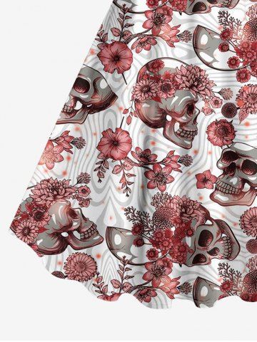 Plus Size Skull Floral Striped Print Hawaii A Line Tank Dress - Red - 4x