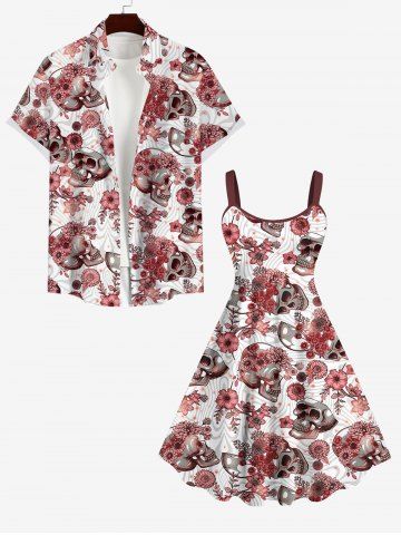 Plus Size Skull Floral Striped Print Hawaii A Line Tank Dress - Red - 5x
