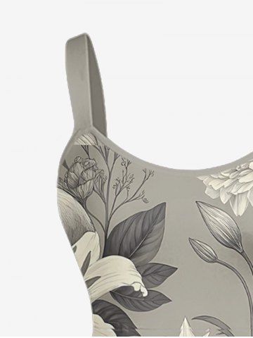 Plus Size Skull Flowers Leaf Print Hawaii Tank Dress - Dark Gray - Xxs