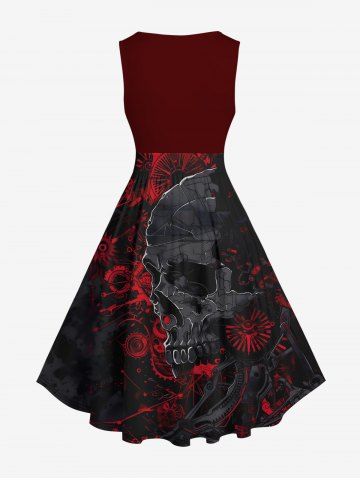 Graphic Dresses > Plus Size Skull Galaxy Sun Print Hawaii 1950s Vintage Dress