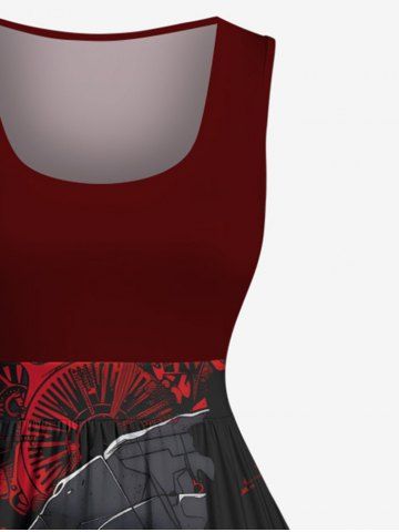 Graphic Dresses > Plus Size Skull Galaxy Sun Print Hawaii 1950s Vintage Dress