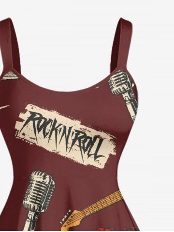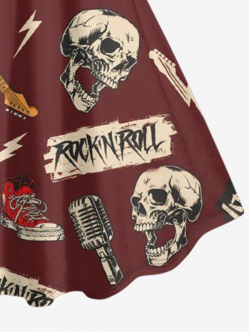 Plus Size Skull Guitar Shoes Microphone Print Hawaii Tank Dress - Red Wine - Xs