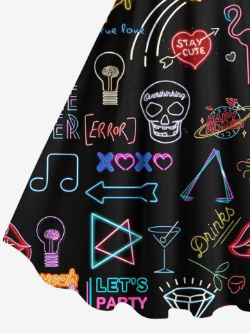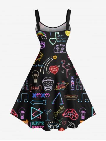 Plus Size Skull Heart Star Rainbow Flamingo Print Hawaii Tank Dress - Black - Xs