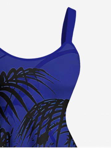Plus Size Skull Hibiscus Flowers Tropical Leaf Print Hawaii Tank Dress - Blue - S