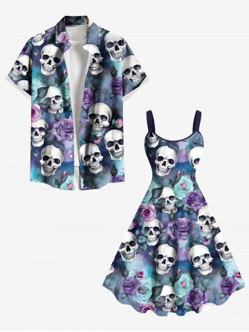 Plus Size Skull Ombre Rose Flower Print Hawaii A Line Tank Dress - Light Blue - Xs