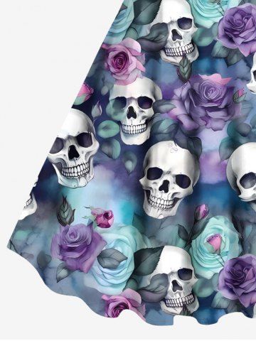 Plus Size Skull Ombre Rose Flower Print Hawaii A Line Tank Dress