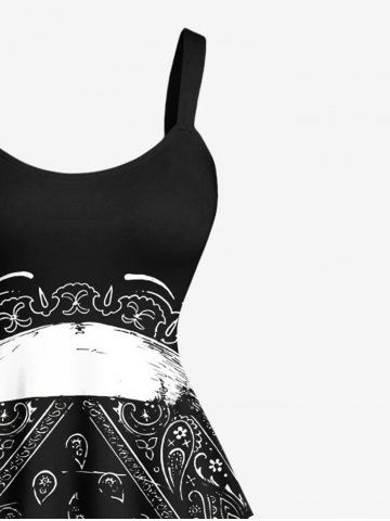 Plus Size Skull Paisley Geometric Graphic Print Hawaii A Line Tank Dress - Black - Xs