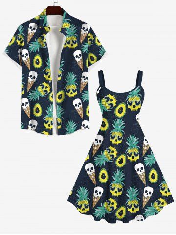 Plus Size Skull Pineapple Heart Ice Cream Print Hawaii Backless A Line Tank Dress - Black - 1x