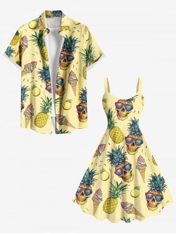 Plus Size Skull Pineapple Ice Cream Print Hawaii A Line Tank Dress - Yellow - M