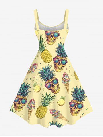 Plus Size Skull Pineapple Ice Cream Print Hawaii A Line Tank Dress - Yellow - L