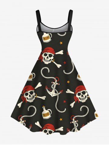 Plus Size Skull Pirate Anchor Rope Print Hawaii A Line Tank Dress - Black - 1x